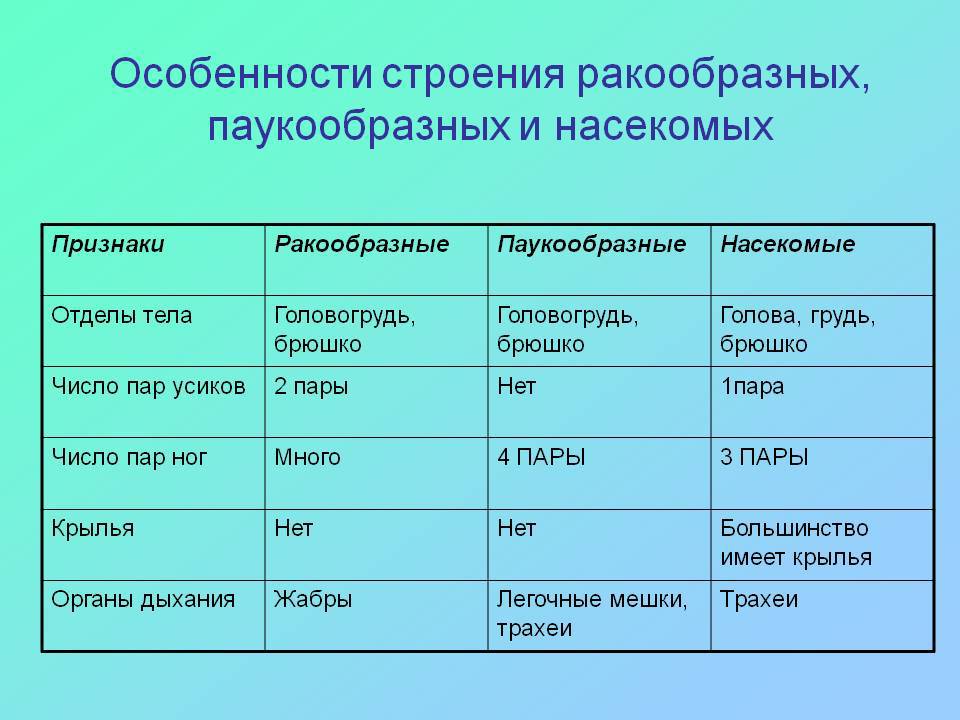 Чем насекомые отличаются от ракообразных и паукообразных ( на основании внешнего и внутреннего строения)?