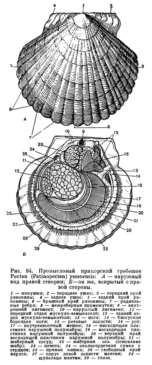 Дайте пожалуйста фото строения морского гребешка снутри и снаружи с обозначениями.