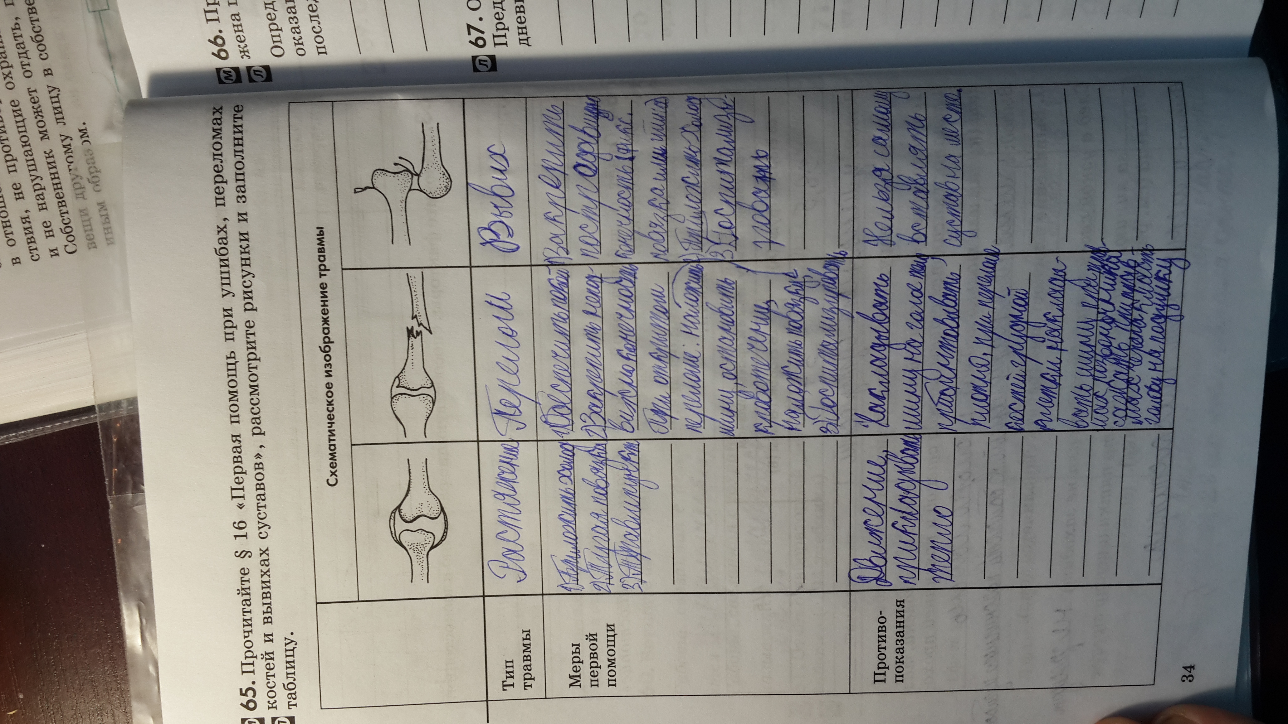 Травмы : , вывих, растяжение, перелом описать в таблице.
