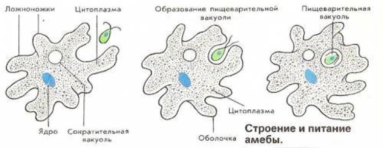 Избыток воды из тела амеба удаляется через а) ядро в)цитоплазму