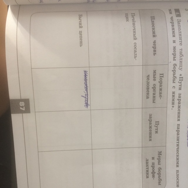 Биология 7 класс таблица Пути заражения паразитическими червями и меры борьбы с ними?