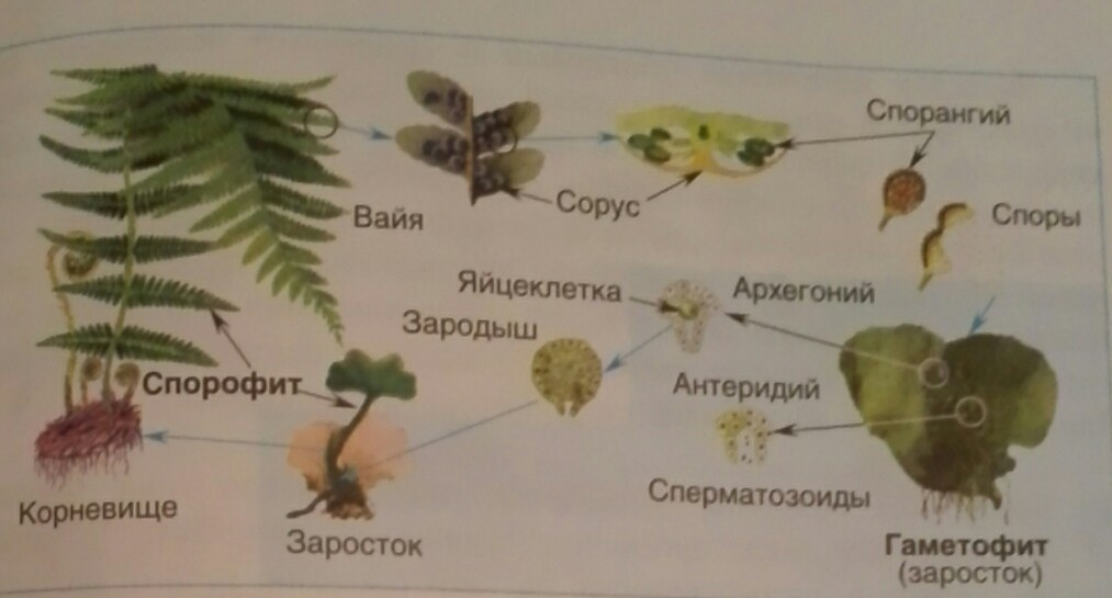 3. опишите схему жизненного цикла папоротника с подписями основных стадий и типов размножения.
