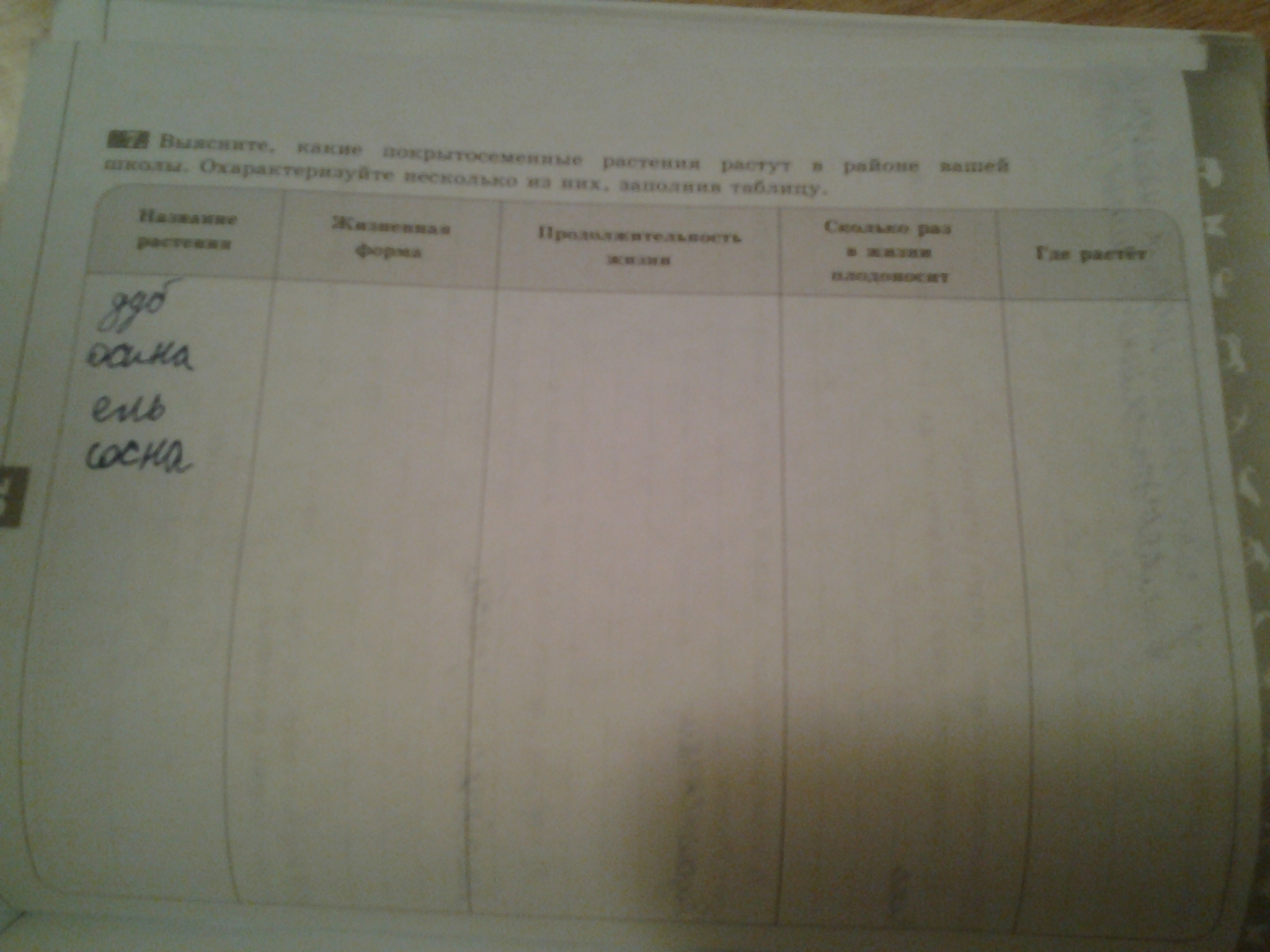 Выясните какие покрытосеменные растения растут в районе вашей школы Охарактерезуйте несколько из них заполнив таблицу.