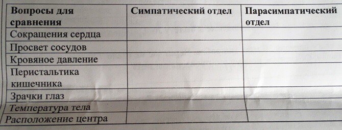 Таблица про органы - симпатический - парасимпатический отдел?