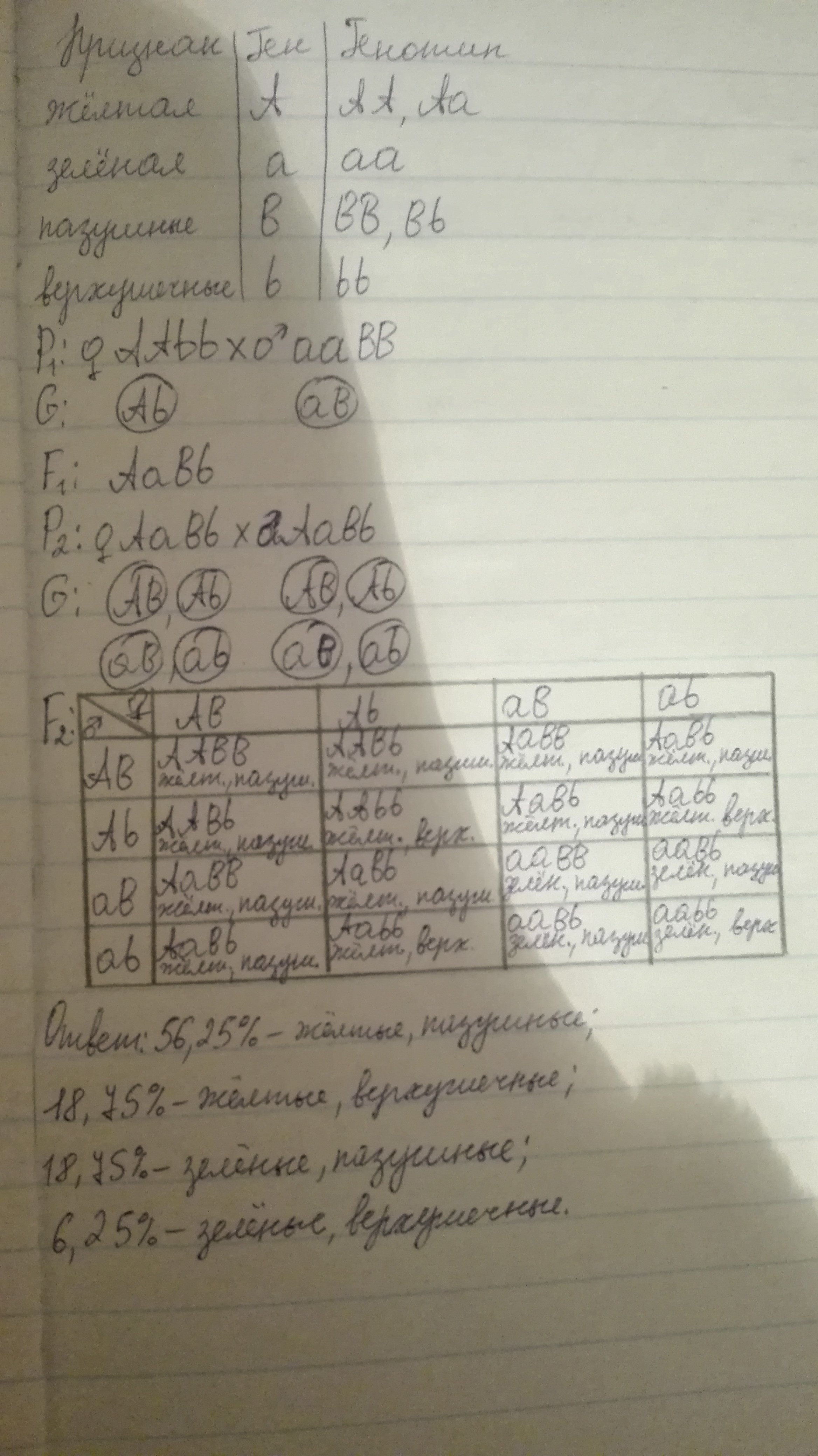Определить генотипы потомков F1 и родителей, составить схему скрещивания потомков первого поколения F1 и определить генотипы и фенотипы во втором поколение F2 ПОМОГИТЕ РЕШИТЬ ЗАДАЧИ.