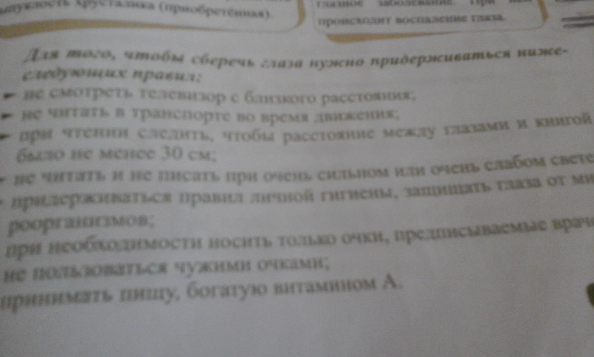 Для того что бы сберечь глаза нужно придерживать ниже следующих правил .