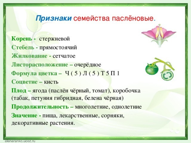1. выбирите из приведённого ниже списка три признака которые присущи растениям семейства Паслёновые, и запишите цифры под которыми они указаны1)плод - ягода или коробочка2) листья - простые или сложны?