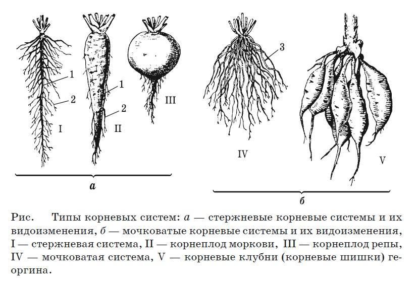 У покрытосеменных   ; корневая система, состоящая из главного, боковых и придаточных корней.